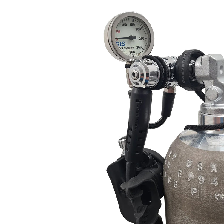 Regulatorpakken består af ScubaPro MK19 EVO DIN kombineret med G260-andet trin, hvilket giver en jævn og pålidelig luftlevering under hele dykket. Det kompakte manometer med Miflex-slange giver et hurtigt og tydeligt overblik over flaskens tryk, mens de medfølgende bolt-snaps og gummibånd holder slanger og udstyr elegant organiseret. Resultatet er et gennemført stage-setup, klar til brug direkte fra kassen.