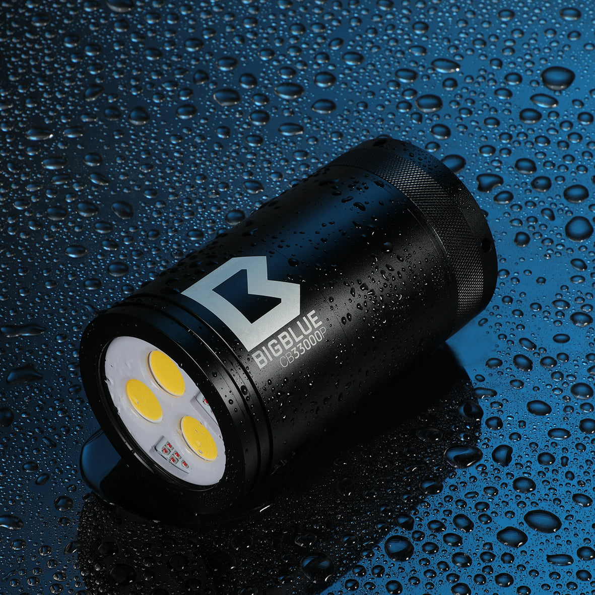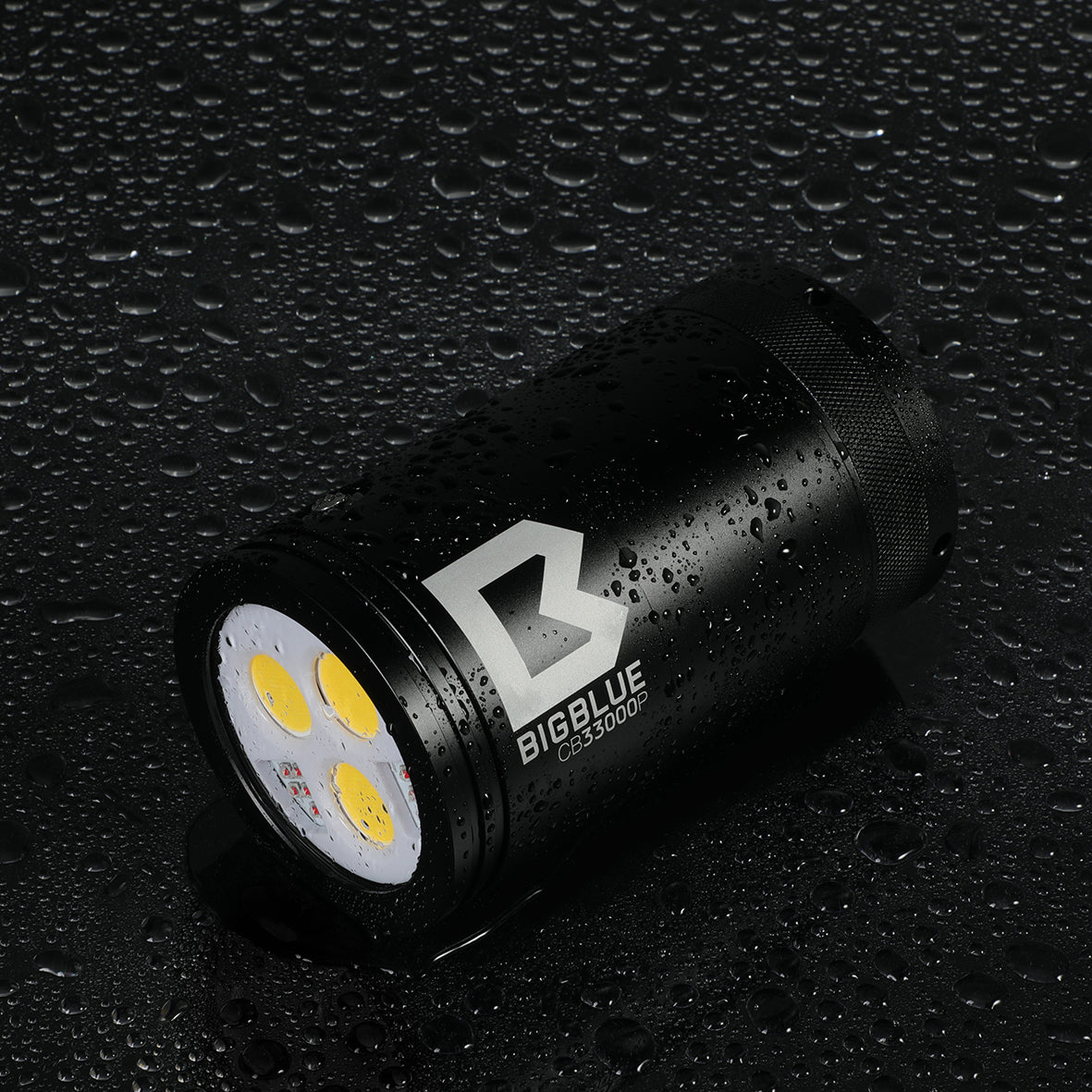 Med sit kompakte design kombinerer CB33000P stor styrke med fleksibilitet og er velegnet til krævende dykkerforhold. Lysstrålen spænder over 160°, og farvetemperaturen på 5.000 K samt farvegengivelsesindeks på Ra 85 sikrer naturlige og klare farver under vandet. Batteriet er genopladeligt Li-ion, og lygten har en brændetid, der varierer afhængigt af lysniveauet – fra 1,5 timer på fuld styrke til 15 timer på laveste niveau.