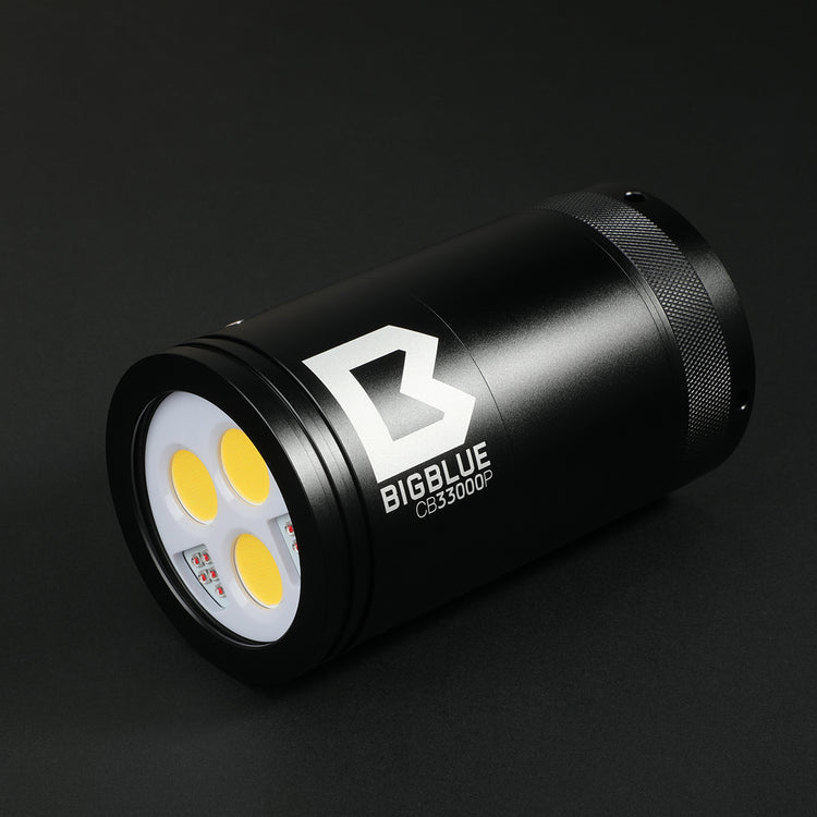 CB33000P er en kraftfuld, genopladelig LED-dykkerlygte, designet til både video- og fotooptagelser under vand. Lyset leverer hele 33.000 lumen fra tre højintensive COB-LED’er og har en bred, jævnt diffunderet lysstråle med høj farvegengivelse, hvilket gør det ideelt til professionelle undervandsoptagelser. Derudover er der ti røde LED’er, som giver 1.200 lumen til diskret belysning under nat- eller lavpåvirkningsdyk.