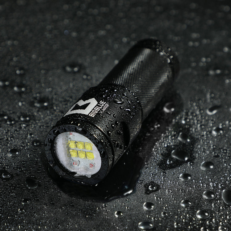 VL4600P er en kraftfuld, genopladelig LED-dykkelygte udviklet til både video- og fotodykning. Med en lysstyrke på op til 4600 lumen fordelt på seks højintensive LED’er leverer lygten et bredt og jævnt lysfelt, som sikrer naturlig belysning uden hårde skygger – ideelt til optagelser under vand. Den brede 120° lysvinkel gør det nemt at oplyse store motiver og scener.