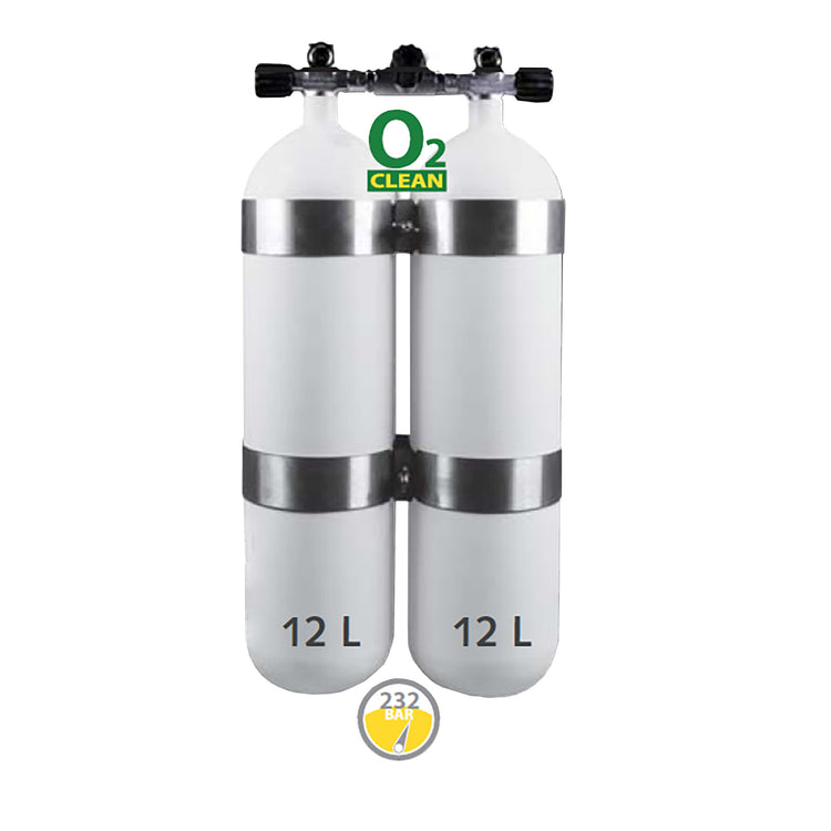 12L Stålflasker 230 Bar / DIN ventil - Dobbeltsæt
