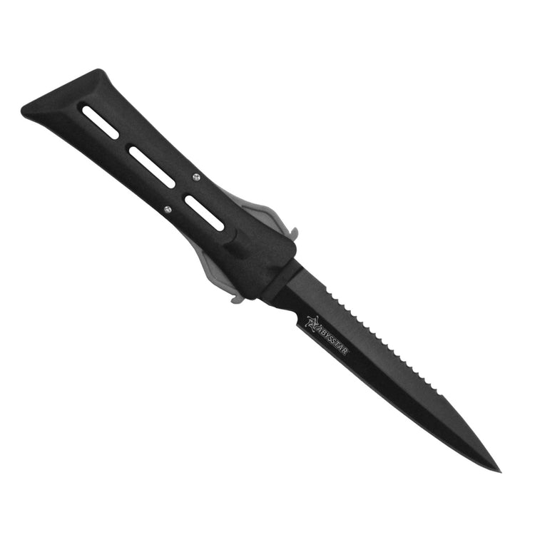 Shadow er en robust og alsidig dykkerkniv fra Abysstar, der er designet til at imødekomme kravene fra både fritids- og professionel dykning. Kniven fås i to længder – 9 cm og 11 cm – så du kan vælge den størrelse, der passer bedst til dit behov under vandet.