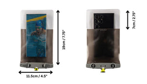 Aquapac Vandtæt Telefonetui – Plus & Plus Plus. Aquapac’s vandtætte etuier er den originale løsning til at beskytte din telefon mod vand, støv, snavs og sand – og de virker stadig bedst. De fås i to størrelser: Plus til almindelige smartphones med eller uden tyndt cover (maks. 16,3 cm i højde og 10 cm i samlet bredde + dybde) og Plus Plus til større telefoner eller dem med kraftige covers. (maks. 19 cm i højde og 10,5 cm i bredde + dybde).