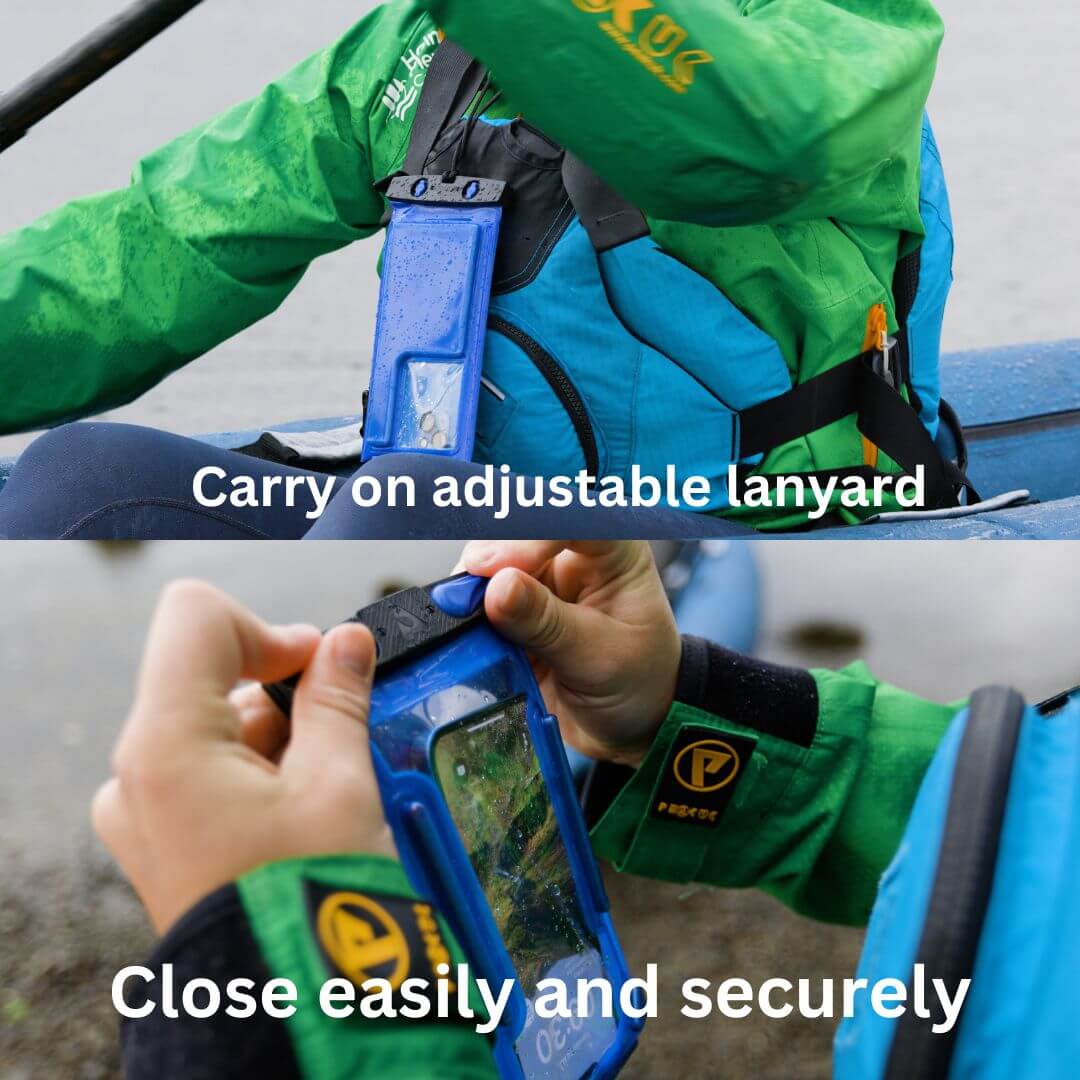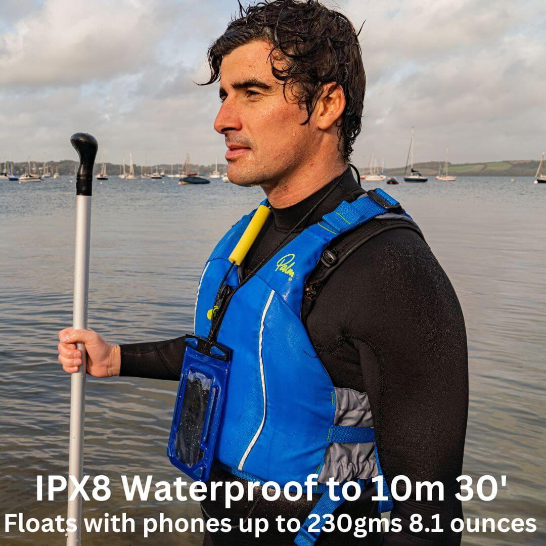 Impact Max Floating Phone Case fra Aquapac er den ultimative beskyttelse til din telefon under krævende forhold. Med 5 mm støddæmpende skum på alle sider er den både stød- og faldsikker – ideel til både land og vand. Den er fuldt vandtæt ned til 10 meter (IPX8) og holder din telefon tør under svømning, sejlads og i regnfulde omgivelser. Trods den kraftige beskyttelse bevares fuld touch-funktionalitet og klar billedkvalitet gennem det gennemsigtige LENZFLEX™ vindue, så du nemt kan tage billeder og bruge telefonen som normalt. Det medfølgende justerbare snøre giver dig mulighed for at bære telefonen sikkert omkring halsen eller håndleddet.