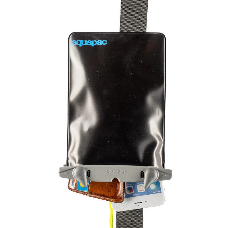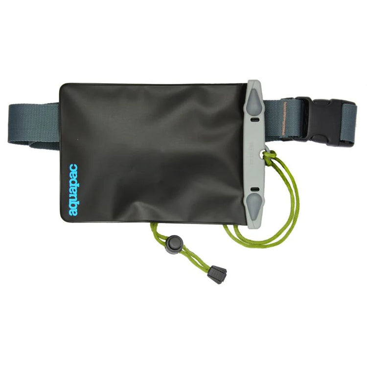 Vandtæt Bælte- og Snoretaske fra Aquapac. Aquapac Belt & Carry Cord Case er den perfekte ledsager til dig, der færdes i våde eller barske omgivelser. Med sin IPX8-vandtæthed klarer den nedsænkning ned til 10 meter, hvilket gør den ideel til alt fra kajaksejlads og strandliv til vandreture i regnvejr. Tasken er fremstillet af slidstærkt, UV-resistent TPU-materiale og er udstyret med det pålidelige AQUACLIP®-lukningssystem, som sikrer, at indholdet forbliver tørt og sikkert. Den sorte folie på fronten beskytter desuden dine ejendele mod nysgerrige øjne – ideelt når du rejser med pas og kontanter.