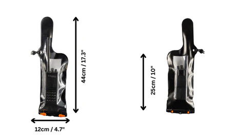 Den store vandtætte VHF-radioetui er designet til at beskytte større tovejskommunikationsradioer og satellittelefoner med lange antenner under selv de mest krævende forhold. Etuiet er 100 % vandtæt ned til 10 meter og fremstillet i Storbritannien af UV-stabiliseret, biologisk nedbrydeligt TPU-materiale. Den er udstyret med det patenterede Aquaclip-lukkesystem, som beskytter effektivt mod vand, støv, sand, mudder og korrosion. Takket være klare vinduer på begge sider kan radioen bruges helt normalt gennem tasken, uanset om du er højre- eller venstrehåndet – uden at det går ud over lydkvalitet eller signalstyrke. Skulle du tabe tasken i vandet, vil den flyde.