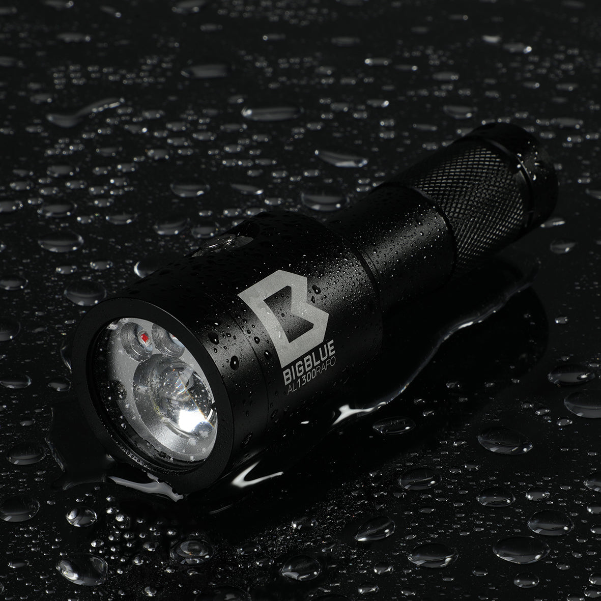 Med en robust og kompakt konstruktion i anodiseret aluminiumslegering er AL1300RAFO bygget til at modstå krævende dykkerforhold. Den fungerer ned til 100 meters dybde og har en vægt på kun 217 gram under vand, hvilket gør den nem at håndtere uden at påvirke opdriften væsentligt. Takket være det udskiftelige Li-Ion 18650-batteri og den lange brændetid – op til 20 timer på laveste niveau – er denne lygte både driftssikker og fleksibel til længere dyk.