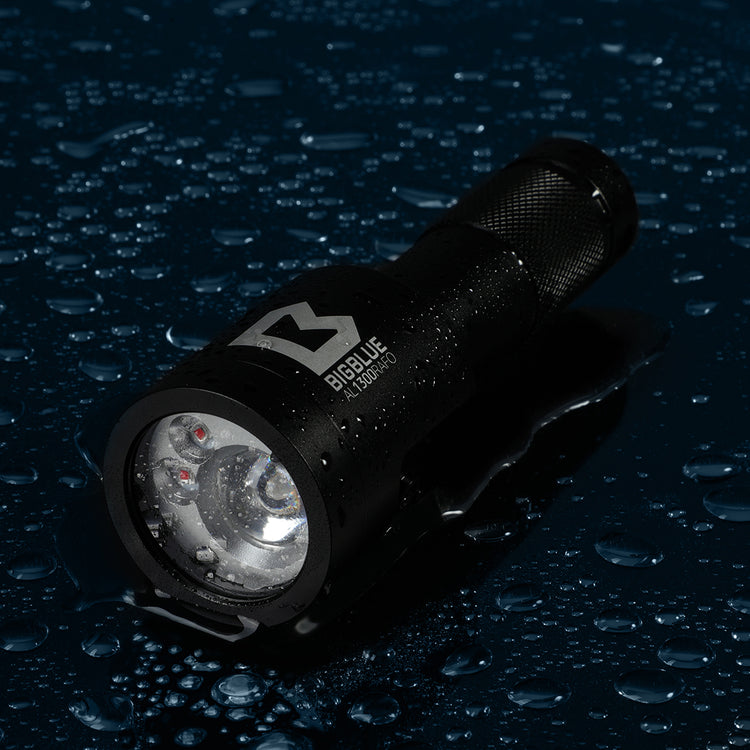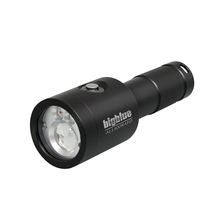 Bigblue AL1300RAFO – Effektiv dykkerlygte med smart teknologi. Bigblue AL1300RAFO er en kraftfuld og kompakt dykkerlygte, der er ideel til både rekreative dykkere og undervandsfotografer. Den leverer en bred 55° lysstråle med en maksimal lysstyrke på 1300 lumen i hvid og 150 lumen i rød, hvilket gør den velegnet til natdyk og mørke undervandsmiljøer, hvor ekstra lys er nødvendigt. Med en farvetemperatur på 6500K (Cool White) gengives undervandsfarverne naturligt og klart, hvilket giver bedre synlighed og kontrast under vandet.