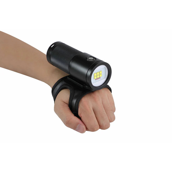 Fleksibel og farverig belysning. VL6200P er skabt til at gengive havets sande farver med sin neutrale 6500K farvetemperatur og indbyggede røde LED-lys, der hjælper med at bevare nattesynet. Det medfølgende gule filter giver mulighed for at skabe en varmere hvidbalance, hvilket især er nyttigt i optagelser, hvor farverigdom er essentiel. Med fire forskellige lysstyrker og SOS-funktion kan du tilpasse belysningen til ethvert dyk – uanset dybde eller omgivelser.