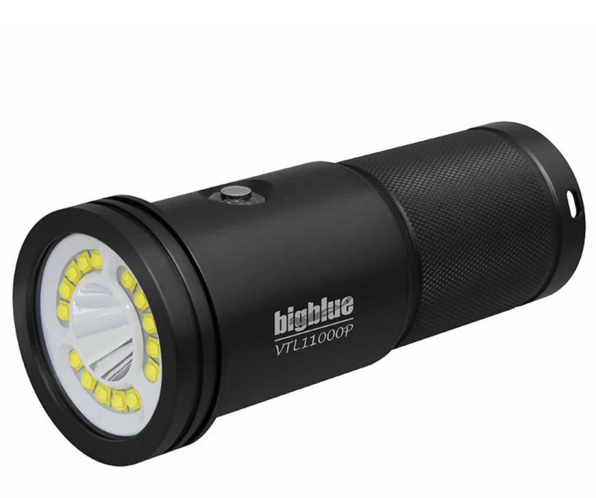 Bigblue VTL11000P er en kraftfuld og alsidig foto- og videolygte designet til undervandsbrug, der leverer op til 11.000 lumen. Lygten er udstyret med både en bred 120 graders lyskegle, ideel til belysning af store områder, og en koncentreret 10 graders kegle, som egner sig godt til fokuseret belysning. Konstruktionen er kompakt og robust med en pålidelig mekanisk tænd/sluk-knap samt batteriindikator, der giver dig fuld kontrol under dykkene.
