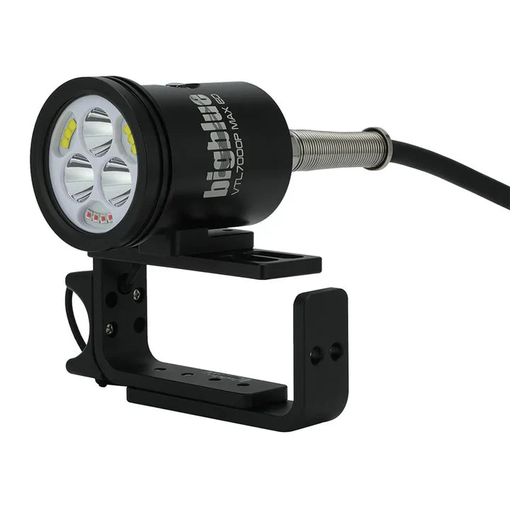 VTL7000P MAX EOD er en avanceret video- og teknisk dykkerlygte, der kombinerer imponerende lysstyrke, fleksibel funktionalitet og robust design. Med sine 7.000 lumen fra seks højtydende LED’er og en bred 120-graders lysvinkel, leverer den en jævn og naturlig belysning, der bringer undervandets farver til live. Lygten indeholder desuden fire røde LED’er, som hjælper med fokusering i lav sigtbarhed, og en smal spotstråle på 2.900 lumen til præcis oplysning af små områder.