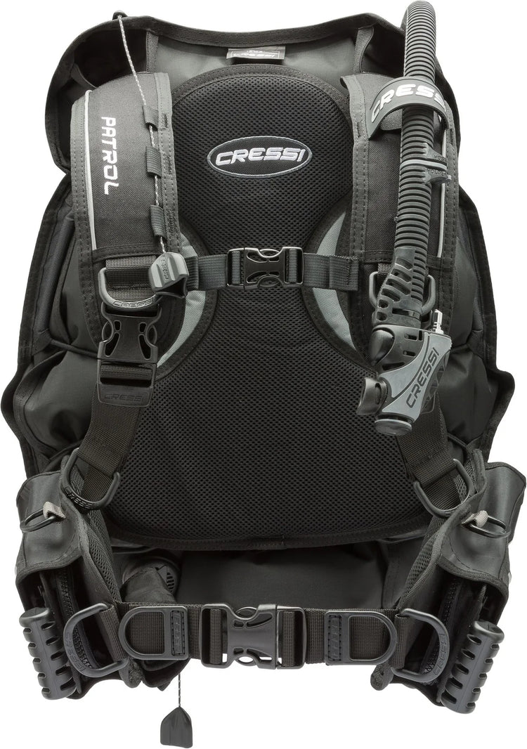 Cressi Patrol BCD er et førsteklasses valg for både professionelle og amatørdykkere, der ønsker udstyr med høj ydeevne og kvalitet. Denne BCD er designet til at imødekomme kravene fra dykkere, der ønsker komfort og pålidelighed i deres udstyr, uanset hvilken dykkedisciplin de dyrker. Patrol BCD er fremstillet i holdbart 420D nylon, den er udstyret med et uafhængigt selesystem, der giver enestående bevægelsesfrihed og mindsker trykket på bryst og armhuler under brug. Den lette, men stabile ryg er udstyret med en stiv polstring, som holder iltflasken på plads og beskytter mod pludselige bevægelser.