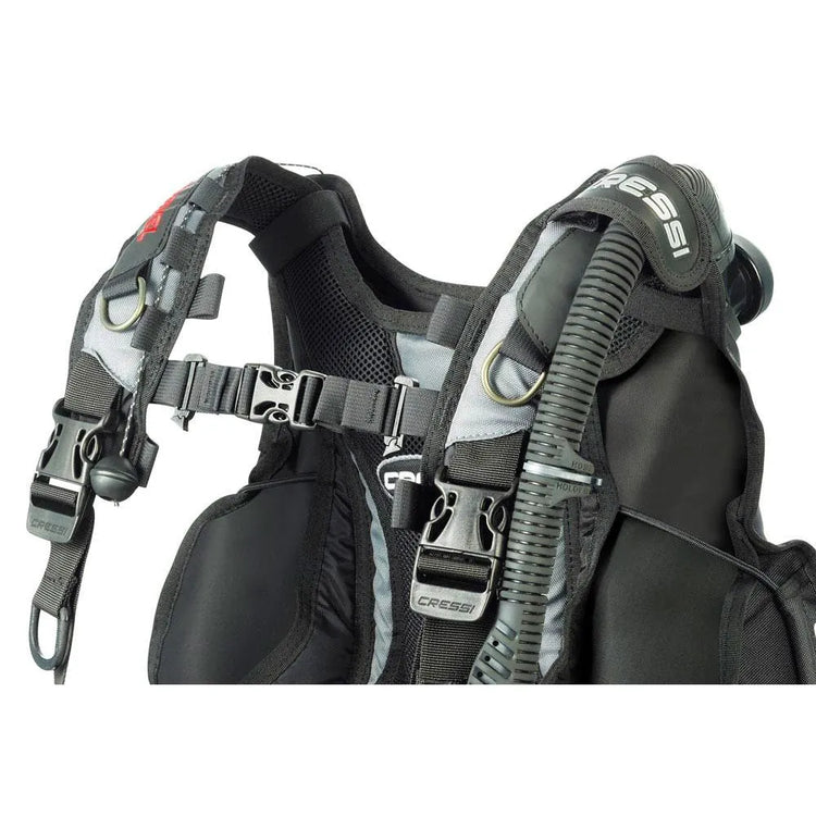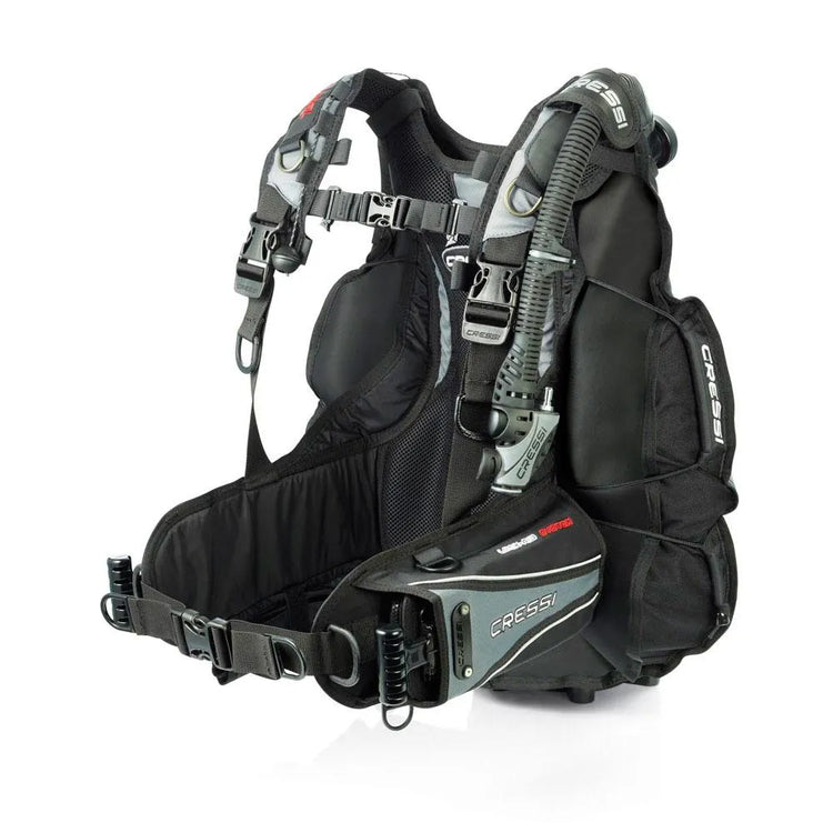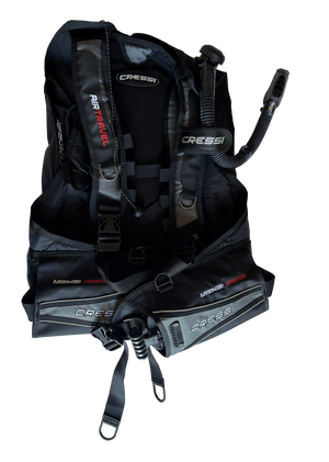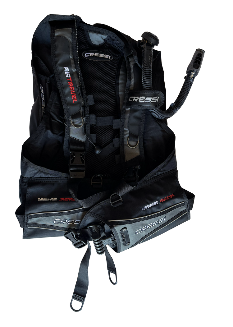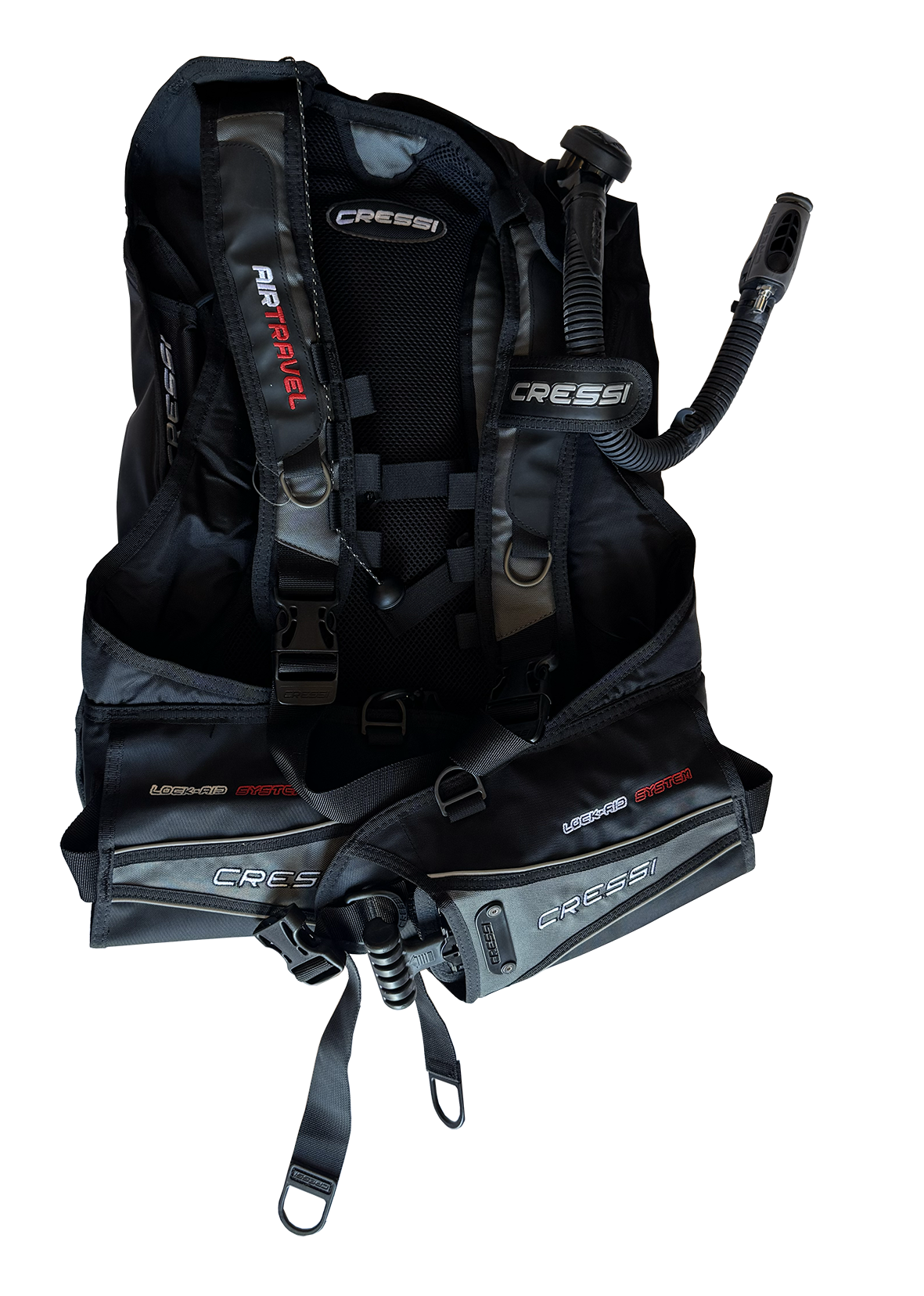 Cressi Air Travel BCD er en letvægts og kompakt opdriftsvest, der er specielt designet til dykkere der rejser med deres grej. Med en vægt på kun cirka 2,5 kg og en sammenfoldelig struktur er den nem at pakke ned i rejsetasken, hvilket gør den ideel til ferie- og eventyrdykkere. Trods sin beskedne størrelse og vægt går den ikke på kompromis med komforten – den er udstyret med polstrede skulderstropper, justerbare remme og en ergonomisk pasform, som sikrer en behagelig oplevelse både over og under vand.