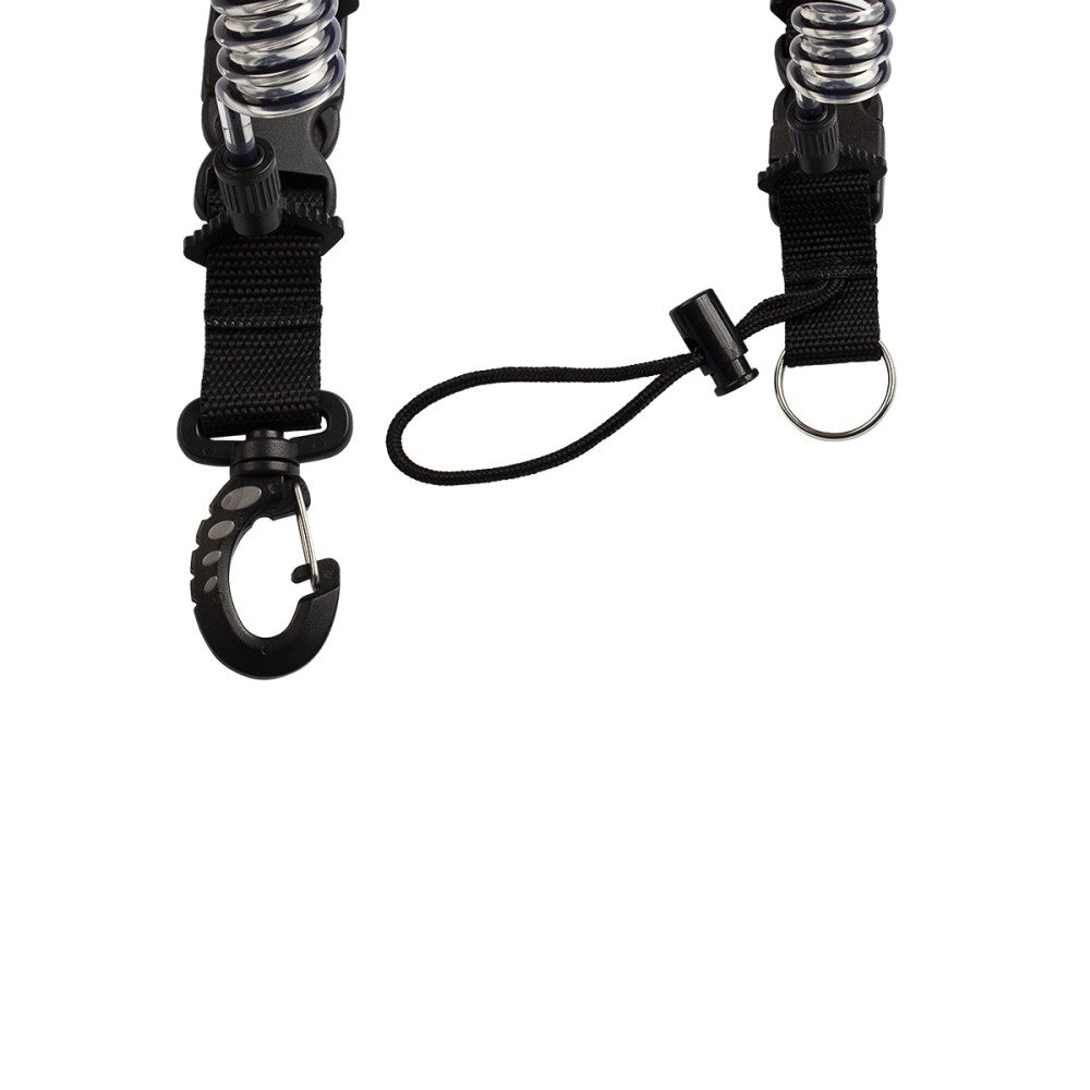 Denne clip shock line er en pålidelig og praktisk løsning til sikring og hurtig fastgørelse af udstyr. Den er fremstillet i en transparent sort farve, der giver et diskret og professionelt look. Shock linen er udstyret med både en splitring og en elastisk snor med løkke, hvilket gør den nem at montere på forskellige typer udstyr. Med det medfølgende quick release-spænde kan linen hurtigt frigøres ved behov – ideel til situationer, hvor fleksibilitet og hurtig adgang er vigtig.
