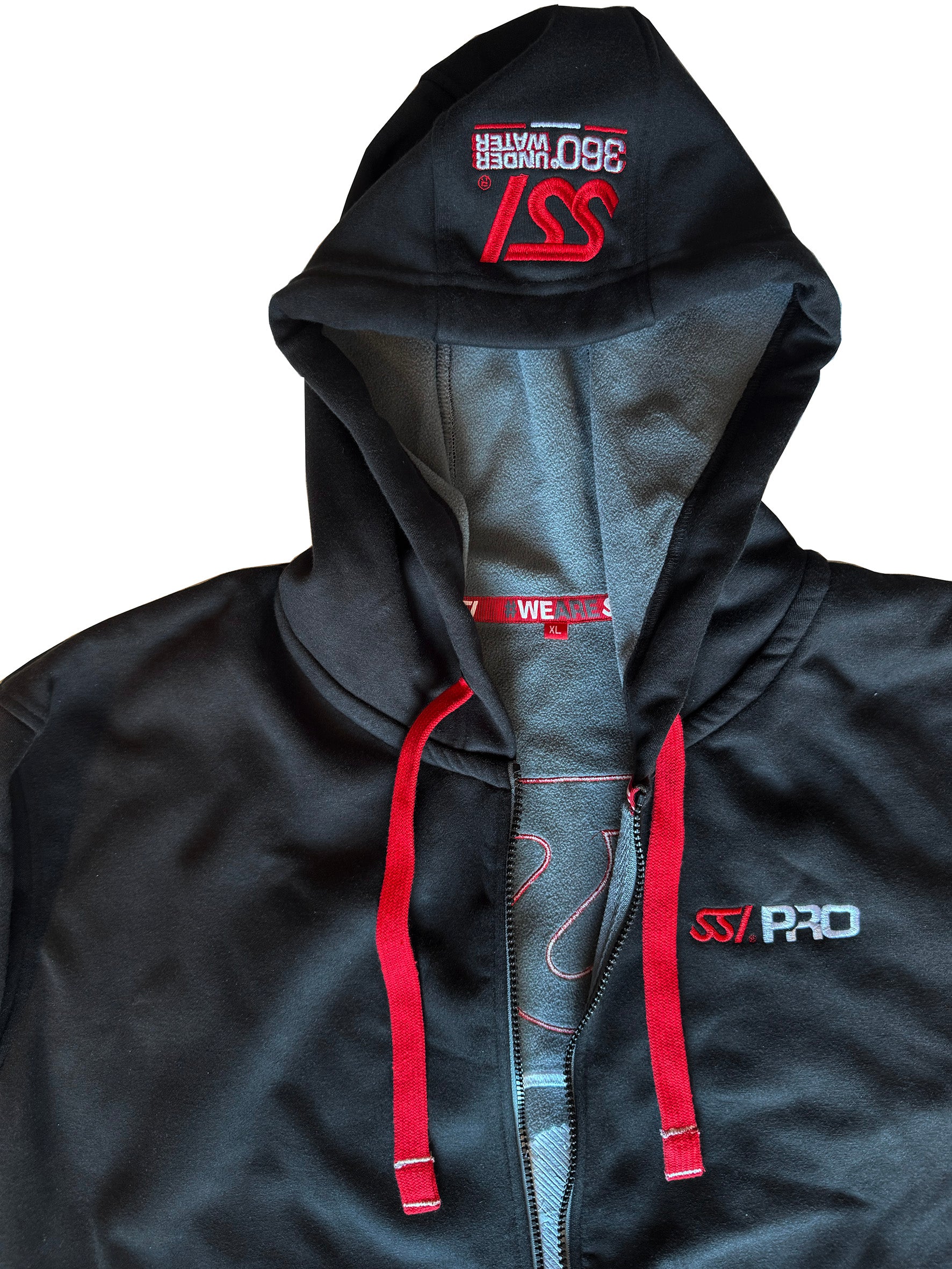 SSI hoodie er en cool og stilfuld hættetrøje, perfekt til både hverdag og eventyr. Den er sort med enkelte røde og hvide detaljer og prydet med det ikoniske SSI-logo, som signalerer passion for dykning. Hoodien har en gennemgående lynlås, der gør den nem at tage af og på, og den er designet i to lag – en yderside i 100% bomuld og et superblødt for i 100% polyester, som giver ekstra komfort og varme.
