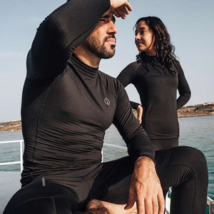 J2 Base Layer-serien er udviklet til at give langvarig komfort og optimal termisk ydeevne under din tørdragt. Den unikke OceanPositive-metervare er fremstillet af GRS-certificeret, genanvendt polyester og sørger for, at huden forbliver tør under hele dykket. Det er essentielt for både varme og velvære. Det hurtigtørrende stof transporterer effektivt fugt væk fra kroppen, hvilket skaber en tør zone mellem hud og dragt. Selv i tilfælde af vandindtrængning vil materialet hjælpe med at lede fugten videre væk gennem dine inderlag, så du forbliver så tør og komfortabel som muligt.