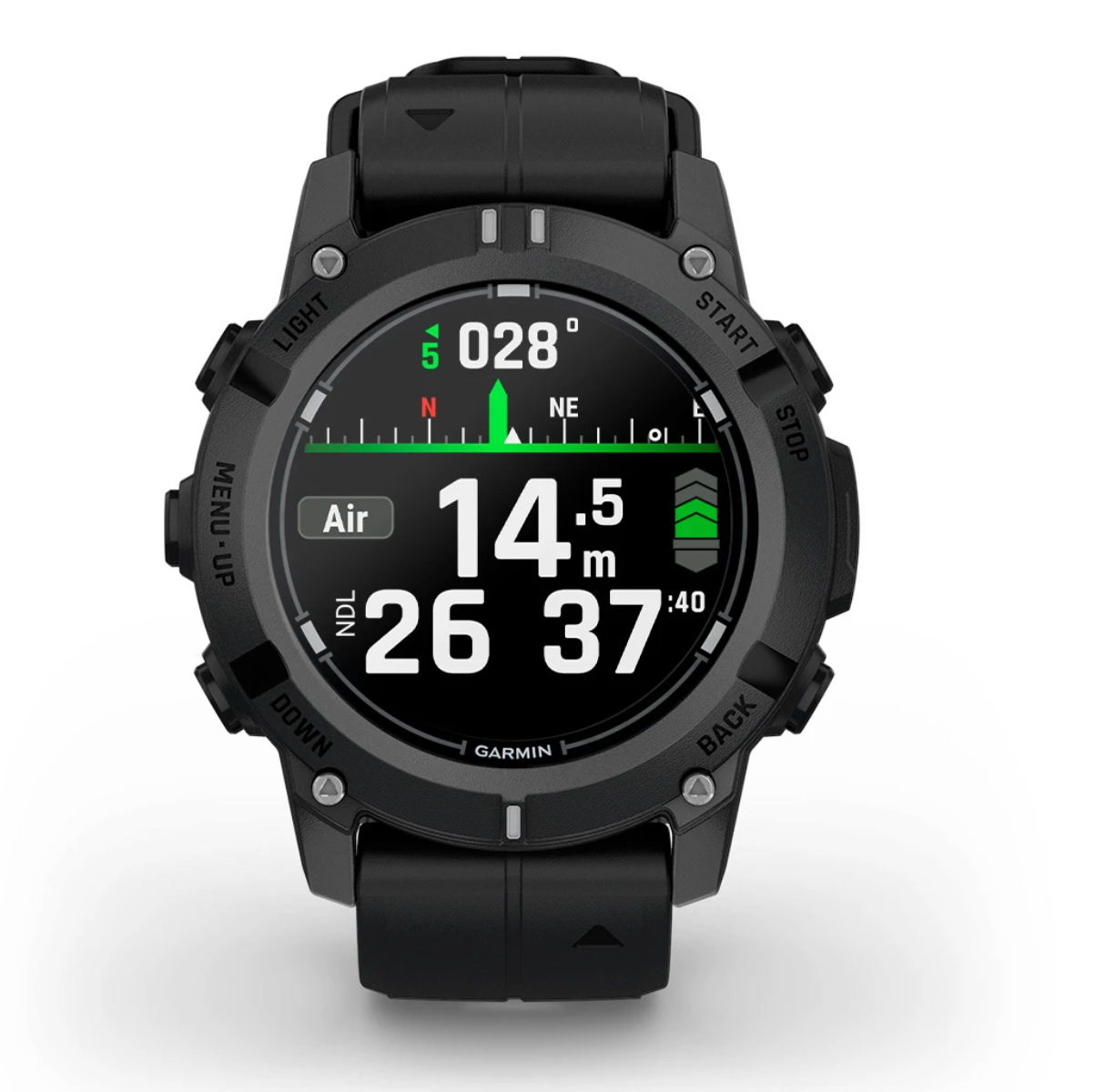 - Dykkekompas, dybdestop, sikkerhedsstop og tilpassede alarmer