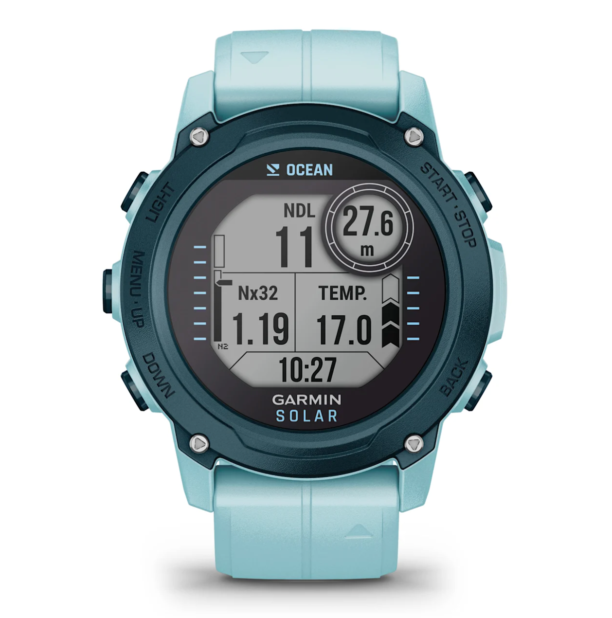 Descent™ G1 – Ocean Edition i farven Azure er en dykkercomputer skabt til dig, der vil kombinere eventyr i havet med omtanke for miljøet. Urets urkasse, urkrans og knapper er fremstillet af plastik, som ellers var endt i havet, og det solopladelige design giver dig mulighed for at blive under overfladen – og over – i længere tid. Samtidig får du en pålidelig partner med Garmins velkendte teknologi, der hjælper dig med at forberede, udføre og analysere dine dyk.