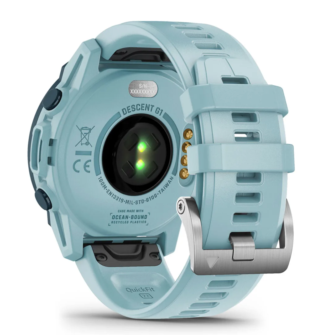 Descent™ G1 – Ocean Edition i farven Azure er en dykkercomputer skabt til dig, der vil kombinere eventyr i havet med omtanke for miljøet. Urets urkasse, urkrans og knapper er fremstillet af plastik... Læs mere