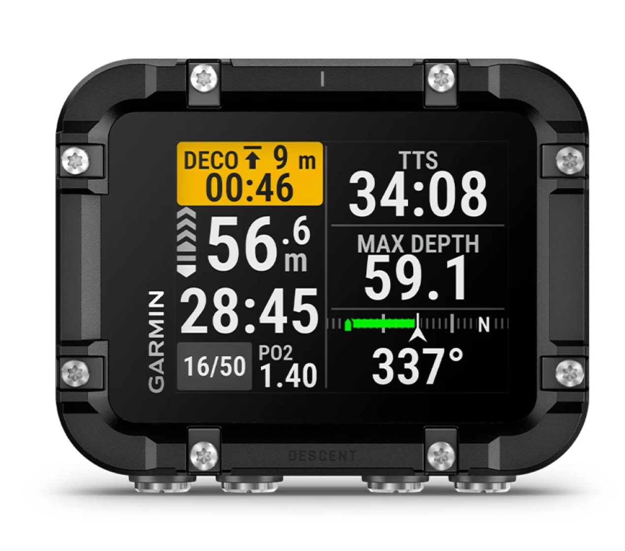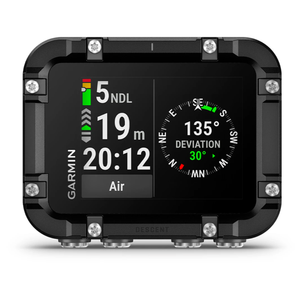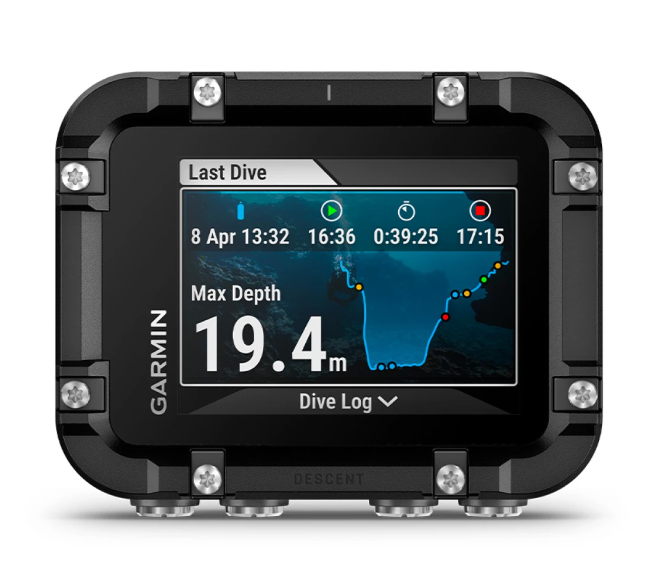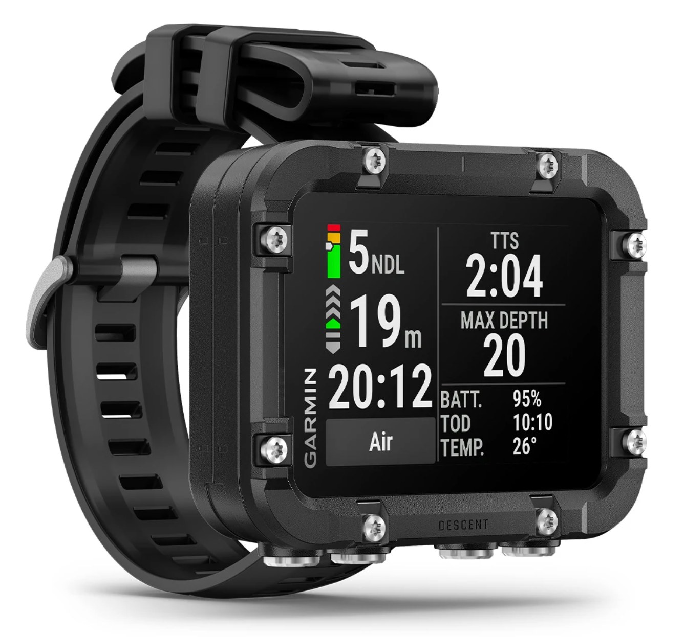 Flipskærmtilstanden gør det let at vende knaplayoutet, så det passer præcis til din håndtering, og de tydelige dykkerskærme kan tilpasses med op til tre datafelter pr. side. Under dyk giver NDL Aware™ dybdemålinger dig mulighed for at optimere din bundtid i realtid, mens det dynamiske dybdiagram giver en intuitiv forståelse af din dykkurves udvikling.