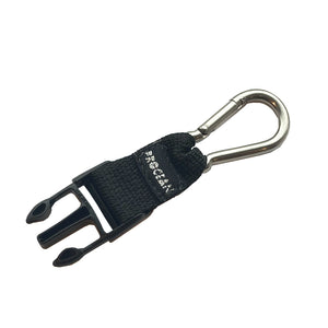 Praktisk dykkerclip med en total længde på 13,5 cm. Udstyret med en han clip og en solid karabin, som gør det nemt og hurtigt at fastgøre udstyr, såsom tin eller andet tilbehør, under dykning. Clip... Læs mere