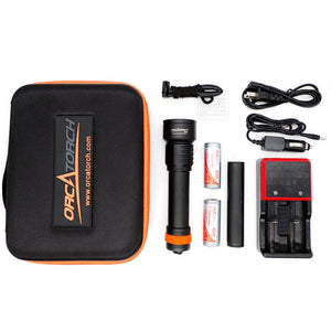 Med D511 får du ikke bare lys – du får overblik og præcision. Den smalle spotstråle er perfekt til at fokusere på detaljer i mørke sprækker, undersøiske huler eller til at spotte fisk under uv-jagt. Lygten leveres med 2 x 26650 batterier, oplader og alt nødvendigt tilbehør, så du er klar til at tage den i brug med det samme. Uanset om du dykker rekreativt, teknisk eller jager, så leverer OrcaTorch D511 stabil og kraftfuld belysning i høj kvalitet – hver gang.