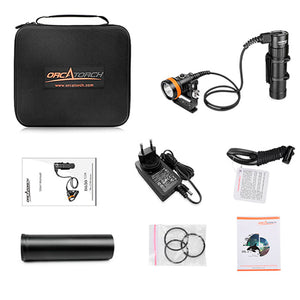 Udforsk dybderne med OrcaTorch D630 – en dykkerlygte i absolut topklasse. Denne kraftfulde canisterlygte er skabt til teknisk dykning, vragdykning og huledykning, hvor lysstyrke og pålidelighed er afgørende. Med en lysstyrke på op til 4000 lumen fra fem CREE LED’er og en fokuseret strålevinkel på 7 grader, får du en skarp og præcis belysning, selv under de mest krævende forhold. Dens solide konstruktion og vandtæthed ned til 150 meter sikrer, at du kan tage den med på selv de dybeste og mest udfordrende dyk.