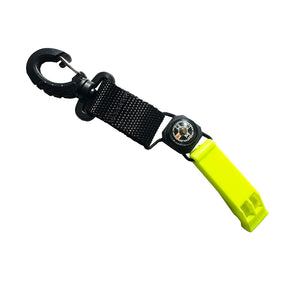 Procean signalfløjten med kompas og sikringsklip er et kompakt og effektivt sikkerhedsredskab til dykning og sejlads. Den kraftige fløjte gør det nemt at tiltrække opmærksomhed i nødsituationer, mens det indbyggede kompas hjælper med at holde retningen. Med det praktiske sikringsklip kan den let fastgøres til udstyret, så den altid er inden for rækkevidde. Fløjten fås i to synlige farver, gul og orange, hvilket gør den nem at spotte på havet og øger sikkerheden yderligere.