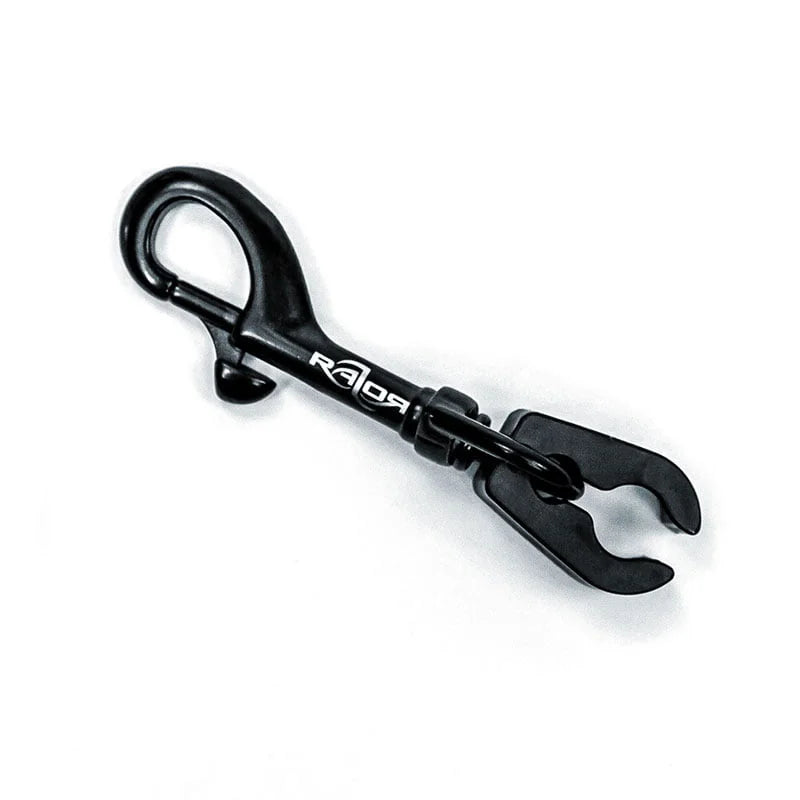 RAZOR Break Away Connector og RAZOR Black Bolt Snap har et nyt design med forbedringer, der forhindrer, at forbindelsen glider langs den lange slange, når den klipses fast på din D-ring. Produktet vejer kun 0,08 kg og måler 7 × 5 × 2 cm. Det leveres med en sort RAZOR-mærket bolt snap, som passer perfekt og er klar til montering, så du hurtigt kan komme i gang med at dykke!