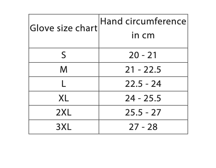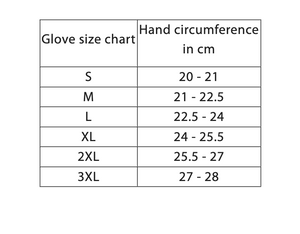 | Størrelse | Håndens omkreds i Cm |