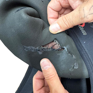 Hvis flængen eller hullet i din våddragt overstiger 5 cm, er du stadig meget velkommen! Kom forbi butikken eller ring til os, så vi sammen kan finde den bedste løsning for din dragt. Vi vurderer skaden og giver et tilbud på reparationen.