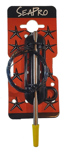 SeaPro Fish Stringer består af en plastbælteholder, en nylonline og en spids i rustfrit stål. Spidsen bruges til at føre linen igennem fisken, så den kan fastgøres sikkert. Fiskene kan herefter hænges på bøjen eller bæres med under dykning. Dette praktiske redskab er designet til at være både holdbart og let at bruge under vand. Den rustfri stålkonstruktion sikrer, at spidsen ikke ruster, selv efter gentagen brug i saltvand, mens nylonlinen er stærk og fleksibel.