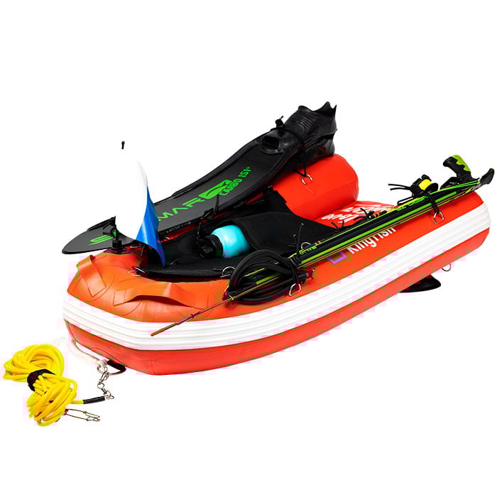 Spearfisher Flåde Large er den perfekte makker til dig, der tilbringer mange timer på vandet med masser af udstyr. Denne robuste og rummelige flåde er designet specielt til den seriøse undervandsjæger, som ikke går på kompromis med hverken plads eller komfort. Flåden pustes hurtigt op på cirka ét minut med den medfølgende fodpumpe og er let at transportere takket være skulderstropperne, så du nemt kan bære den til og fra vandet med hænderne fri.