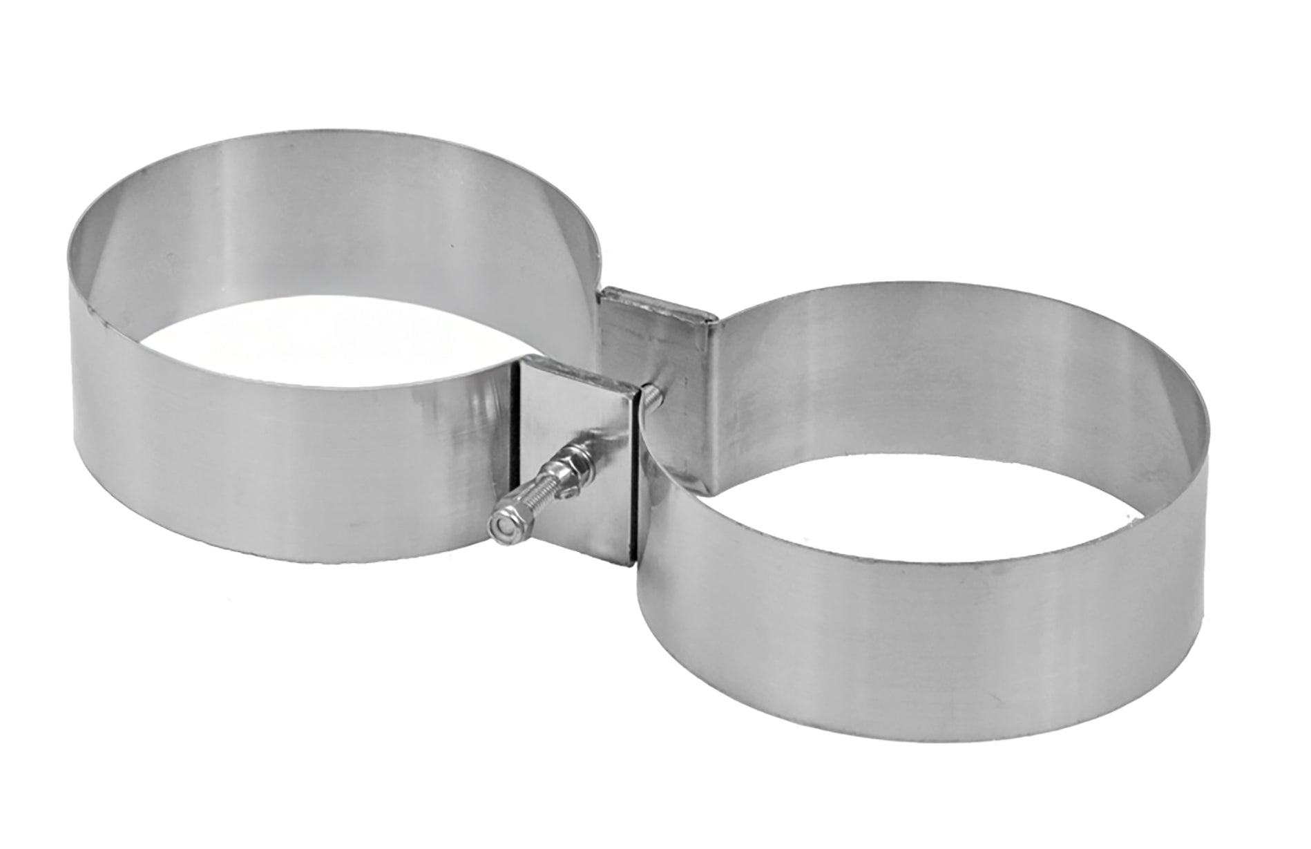 Tecline flaskebånd til dykning er 60 mm brede og fås i tre forskellige størrelser, så de passer til forskellige flaskediametre. Båndene er fremstillet i rustfrit stål og leveres komplet med bolte og møtrikker, hvilket gør dem klar til montering på dobbelt sæt flasker.